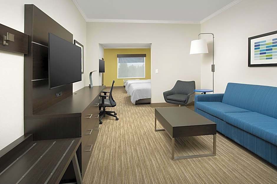 A flat-screen cable TV with a DVD player is featured in this room. A microwave, small fridge, and coffee-making facilities are included.